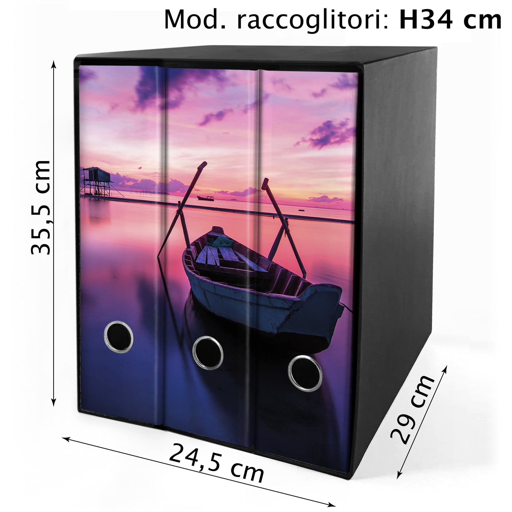 - BOX Realizzato in cartone incollato a mano, contiene il set di raccoglitori con l'immagine che non viene interrotta dalle tradizionali custodie