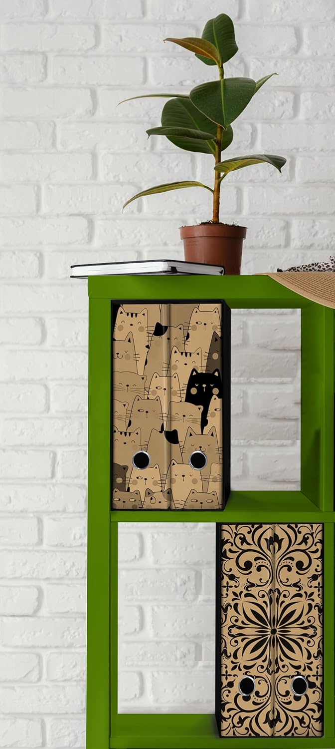 Complemento d'arredo composto da un di SET 2 Raccoglitori ad anelli Dorso 8 cm completi di divisori, inseriti nel nuovissimo Box realizzato a mano. I raccoglitori sono stampati con colori atossici su carta riciclata avana. Lo stile di questi raccoglitori è elegante e ricercato, i materiali sono robusti per resistere nel tempo. Il box che contiene i 2 raccoglitori entra anche nelle librerie Ikea Kallax. L'interno può contenere fogli e buste A4 è rivestito in carta avana e può essere personalizzato con meccanismo a 4 anelli. L'immagine è stampata su tutto il lato esterno di ogni raccoglitore e crea la composizione con un'immagine che vedi. I raccoglitori ad anelli sono rivestiti da una elegante finitura protettiva opaca. I materiali che compongono il Set sono 100% riciclabili.