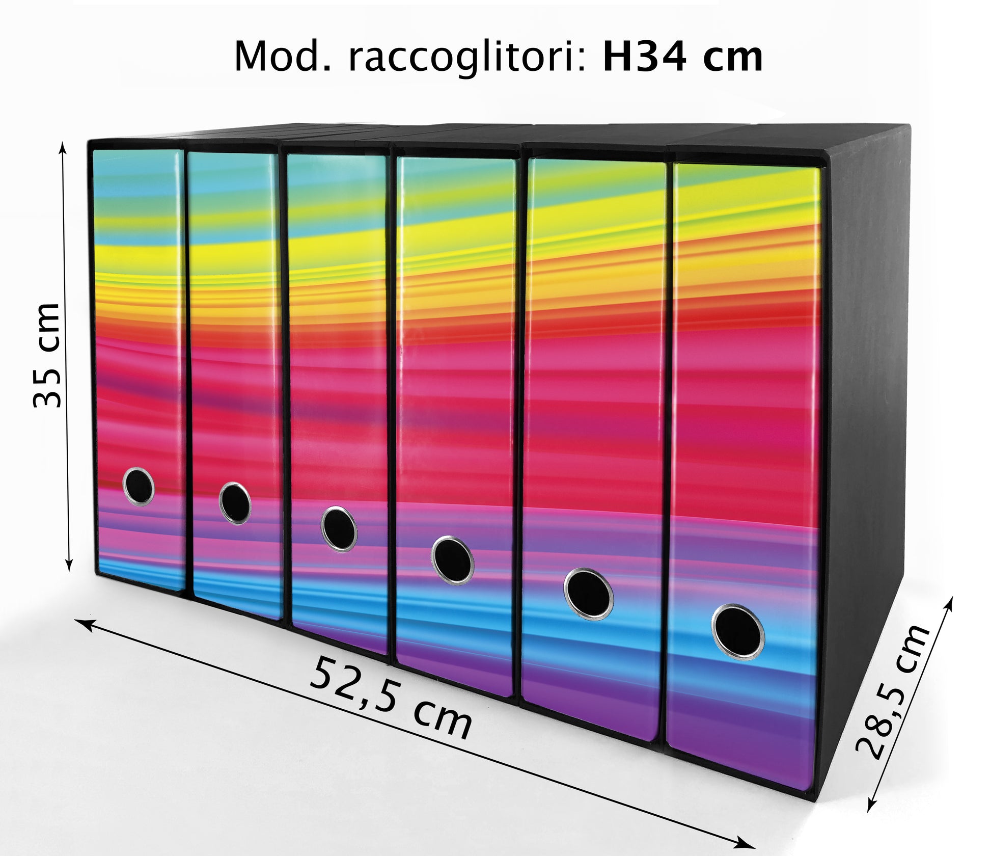 - Il Set con raccoglitore alto 31 cm, completo di 6 custodie è alto 32 cm