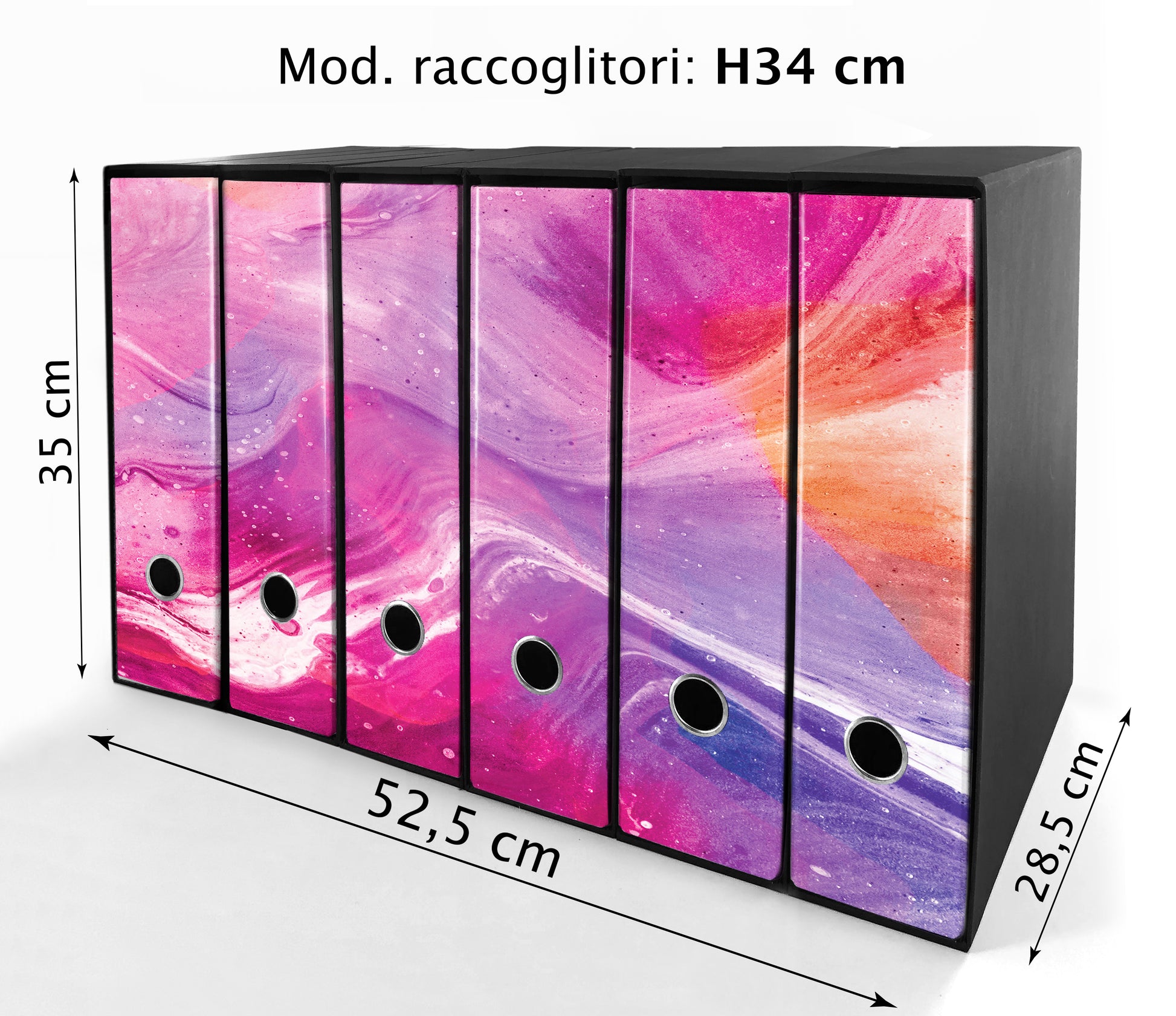 - Il Set con raccoglitore alto 31 cm, completo di 6 custodie è alto 32 cm
