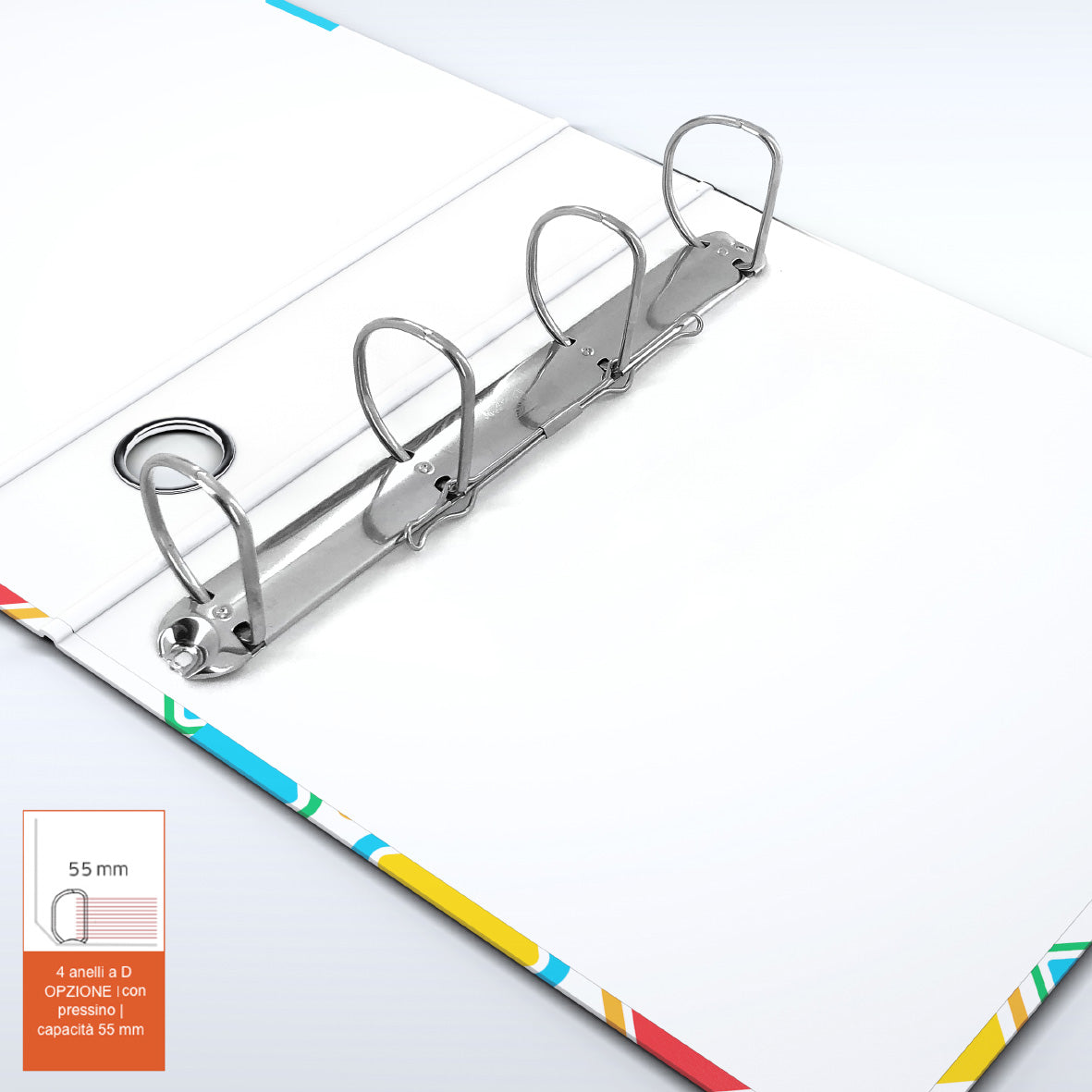 - SET composto da 8 Raccoglitori + 8 custodie ad anelli Dorso 8 cm. dai colori brillanti, pensati per rendere positivo l'ambiente dove lavori e vivi. L'immagine della copertina avvolge tutto il lato esterno di ogni raccoglitore e crea la composizione con un'immagine. L'interno può contenere fogli e buste, può essere personalizzato con meccanismo a 2 o 4 anelli. Per resistere all'usura i raccoglitori ad anelli sono rivestiti da plastifica lucida. Ogni raccoglitore è dotato di custodia singola e hai la possibilità di scegliere l'altezza dell'insieme per adattarlo alla tua libreria. I robusti materiali che compongono il Set, sono 100% riciclabili.